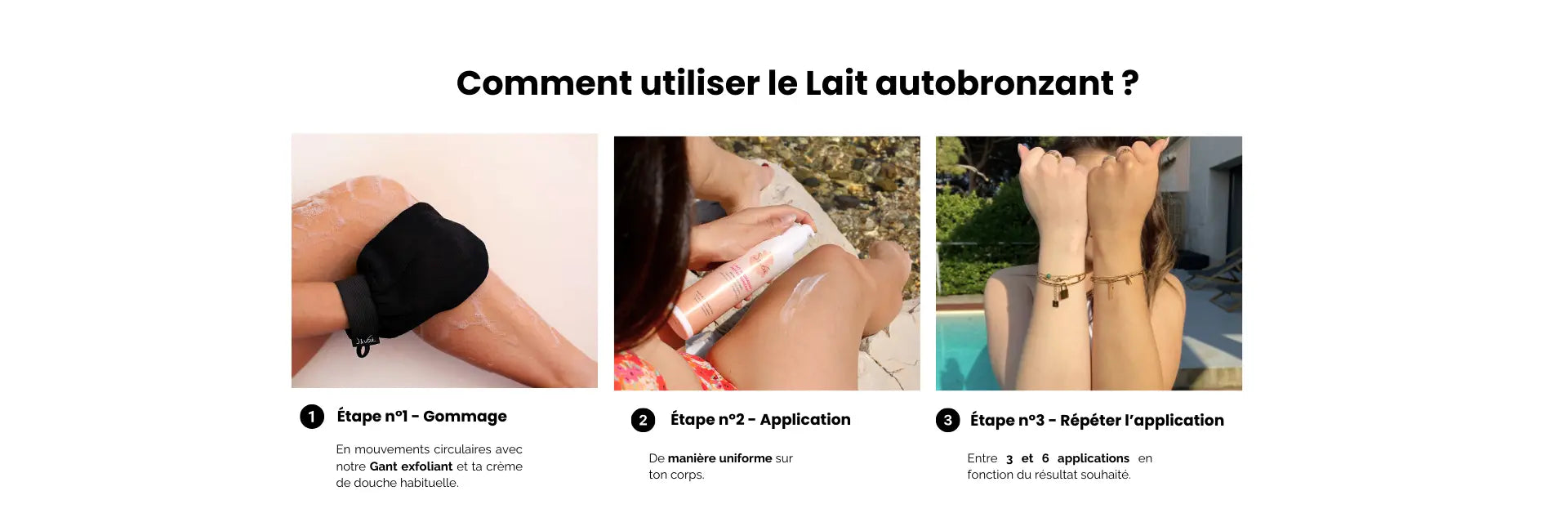 Notre lait autobronzant est conçu uniquement pour une application sur le corps. Pour un soin ciblé visage, nous te conseillons le soin hydratant visage, enrichi en Acide hyaluronique.